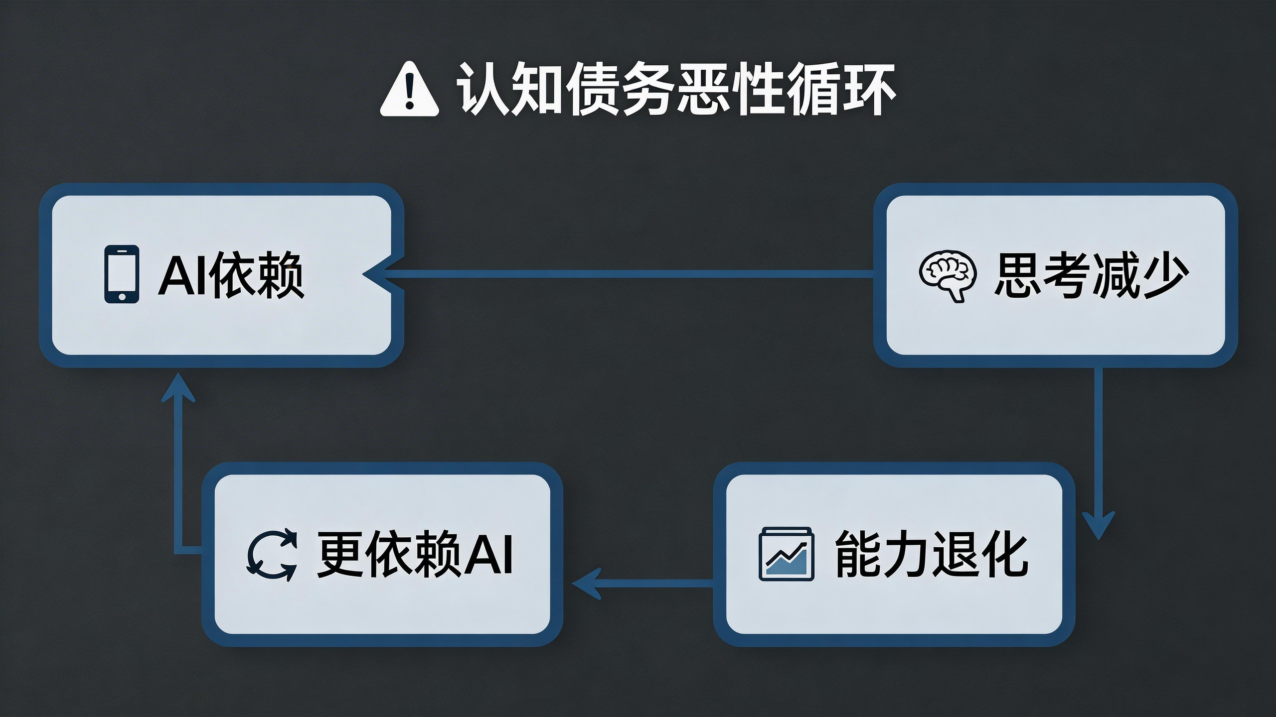 研究者管这个叫”认知债务”。你省下的每一次思考,都是在借债。短期效率高了,但债在累积。