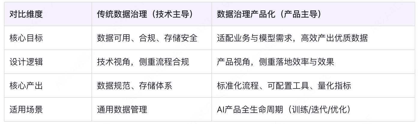 数据治理产品化与传统数据治理的核心区别,可通过下表快速区分: