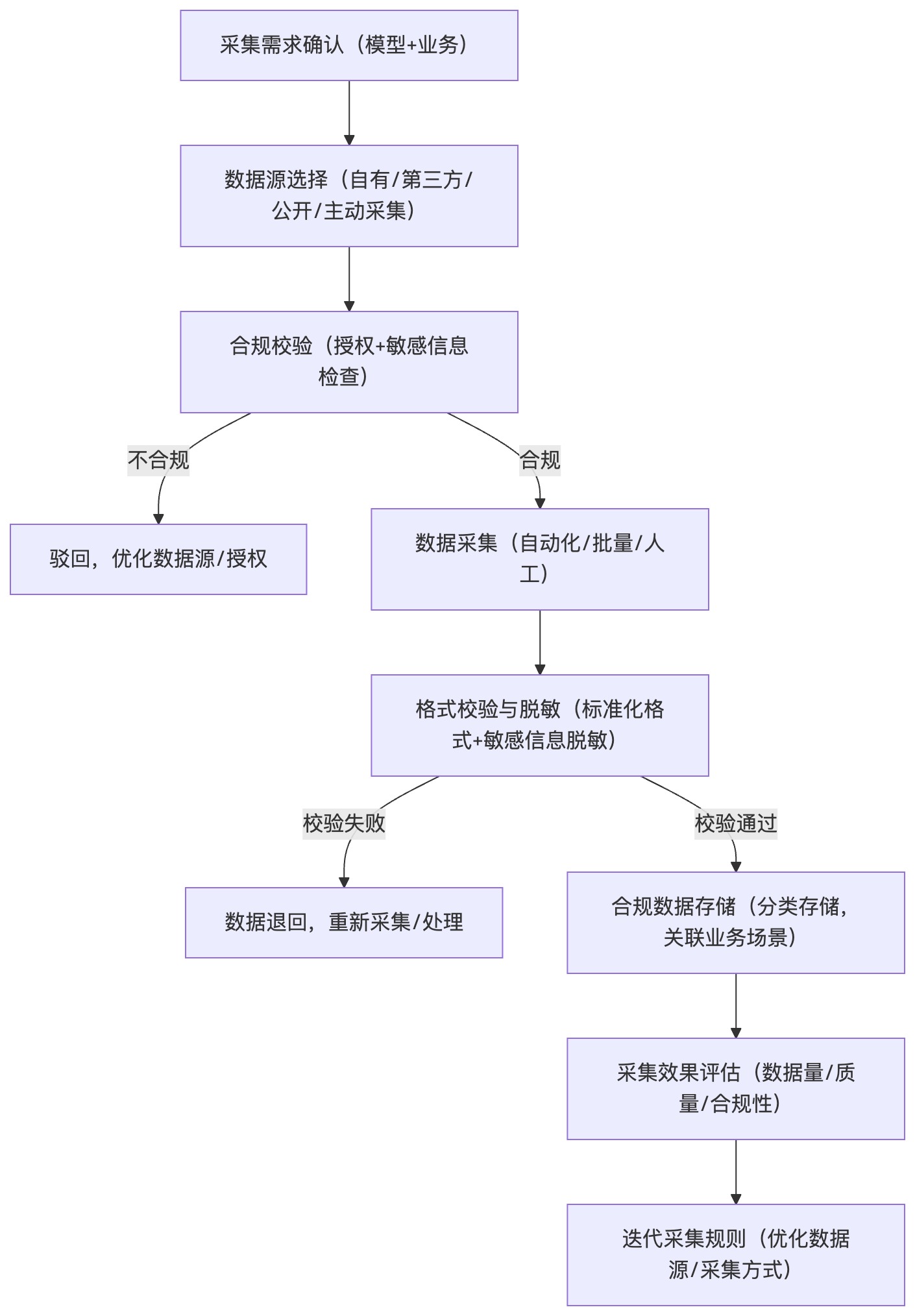 数据采集的最大风险是合规问题(违反《个人信息保护法》《生成式AI服务管理暂行办法》),产品化设计需将合规要求嵌入采集全流程,核心设计要点: