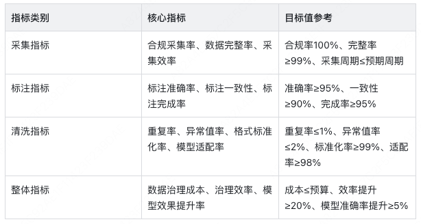 - 量化指标体系:建立数据治理全流程量化指标,定期复盘优化,核心指标如下: