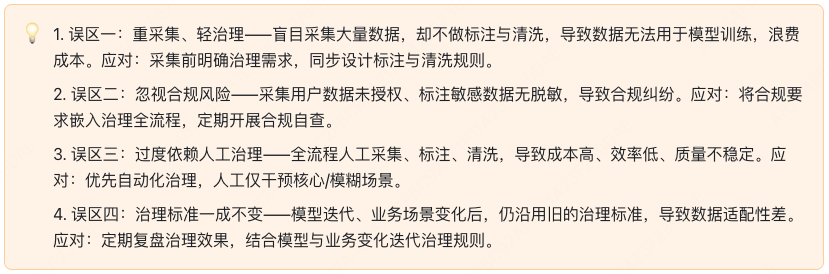通俗类比:数据治理就像“食材加工”,采集是“选食材”,标注是“分类处理食材”,清洗是“去除杂质、处理变质食材”;而产品化设计就是制定“食材选品标准、加工流程、质检规则”,让无论谁来操作,都能稳定产出优质“食材”,支撑后续“烹饪”(模型训练、产品落地)。