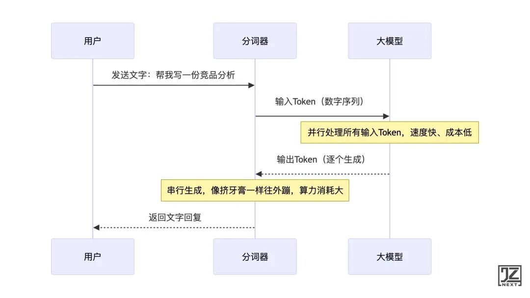- 输出 Token:模型必须串行生成,前一个词没生成,后一个词就无法计算。就像工厂流水线,原材料(输入)可以批量卸货,但成品(输出)只能一件一件下线。
