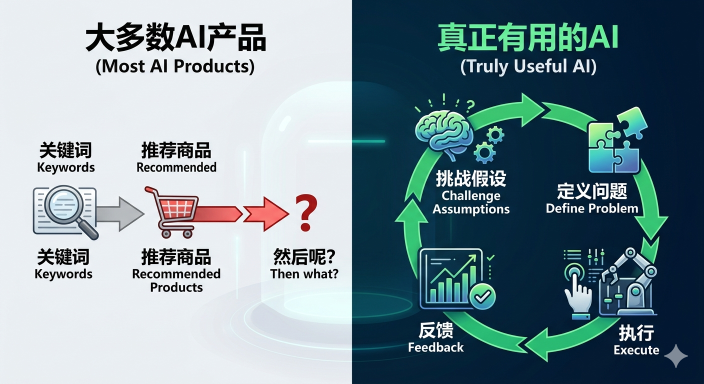 带着这个失望,开始想一个不同的问题:有没有一种AI工具,不是在已有的思路上帮着跑得更快,而是能帮着判断这个思路本身对不对?