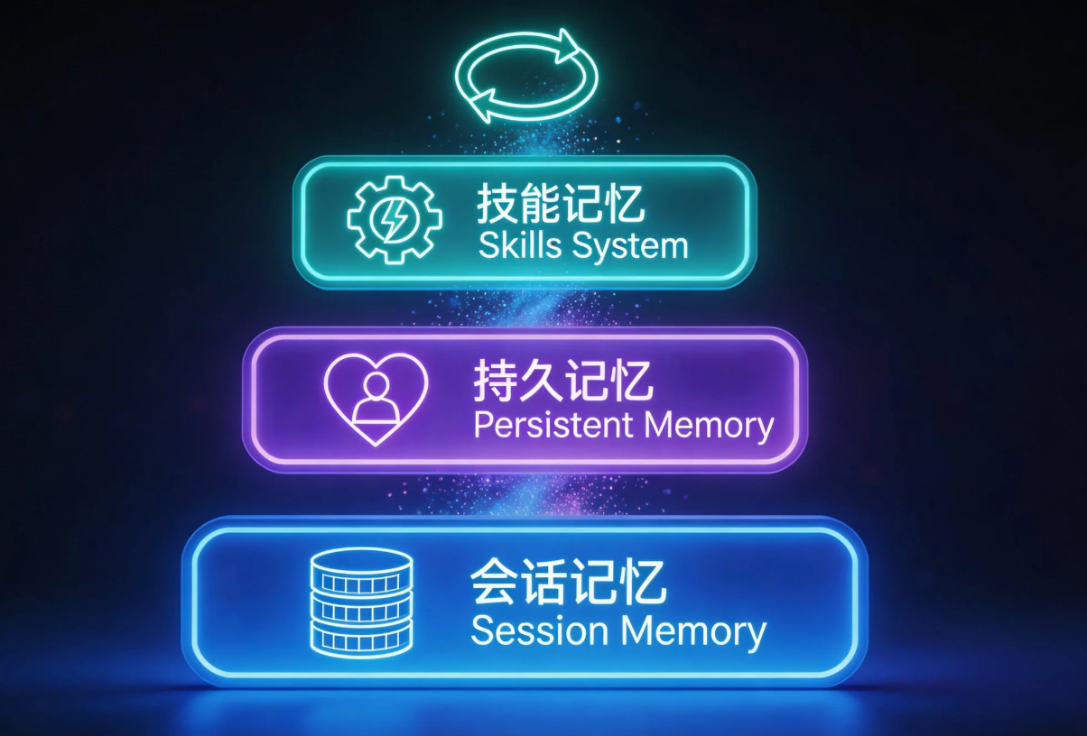 它做了一件其他 Agent 基本没有做到的事:把记忆分成了三个层次,并且让这三层之间可以自动流动。