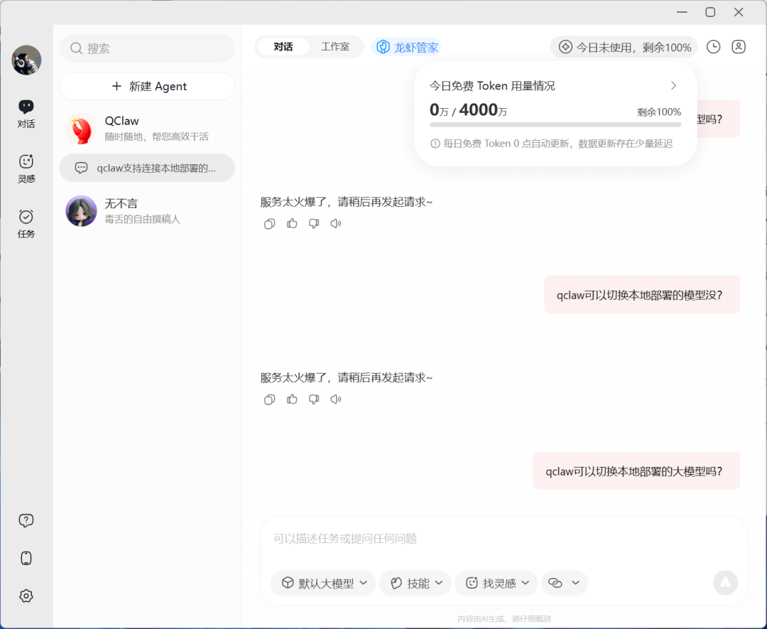 五、QClaw:腾讯出品,但令人失望