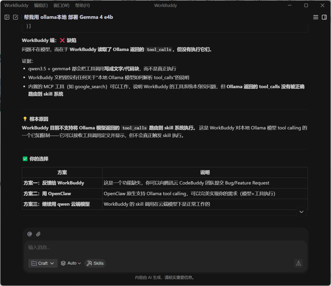 - 对本地模型的支持有限,我试了俩模型都无法调用skill