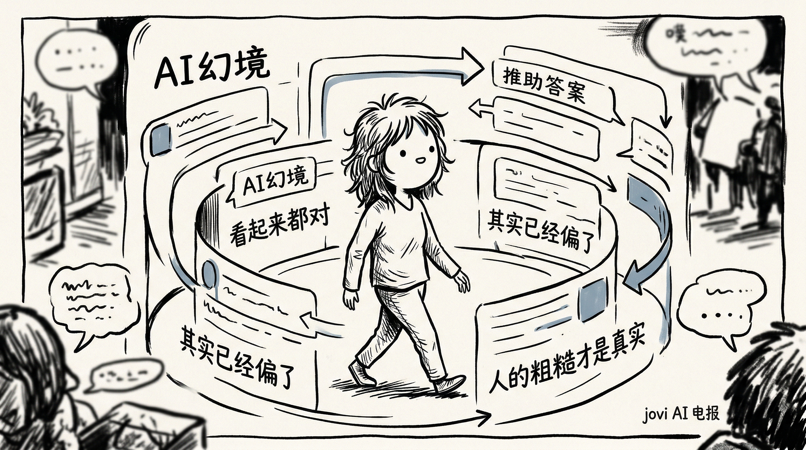 我管它叫AI认知幻境。这个词听起来像只发生在脑子里,但它不会只停在认知里。待久了,它会慢慢渗到判断、关系、表达,最后变成我们理解现实的一整个环境。所以下面还是简称它:AI幻境。