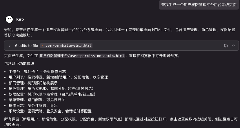 我的做法是,把负责的平台的服务代码从GIT上拷贝下来,导入Kiro,让它帮我生成系统架构图、功能模块图、业务流程图,然后让它详细讲解每个模块的产品功能、使用场景、对应的用户角色。