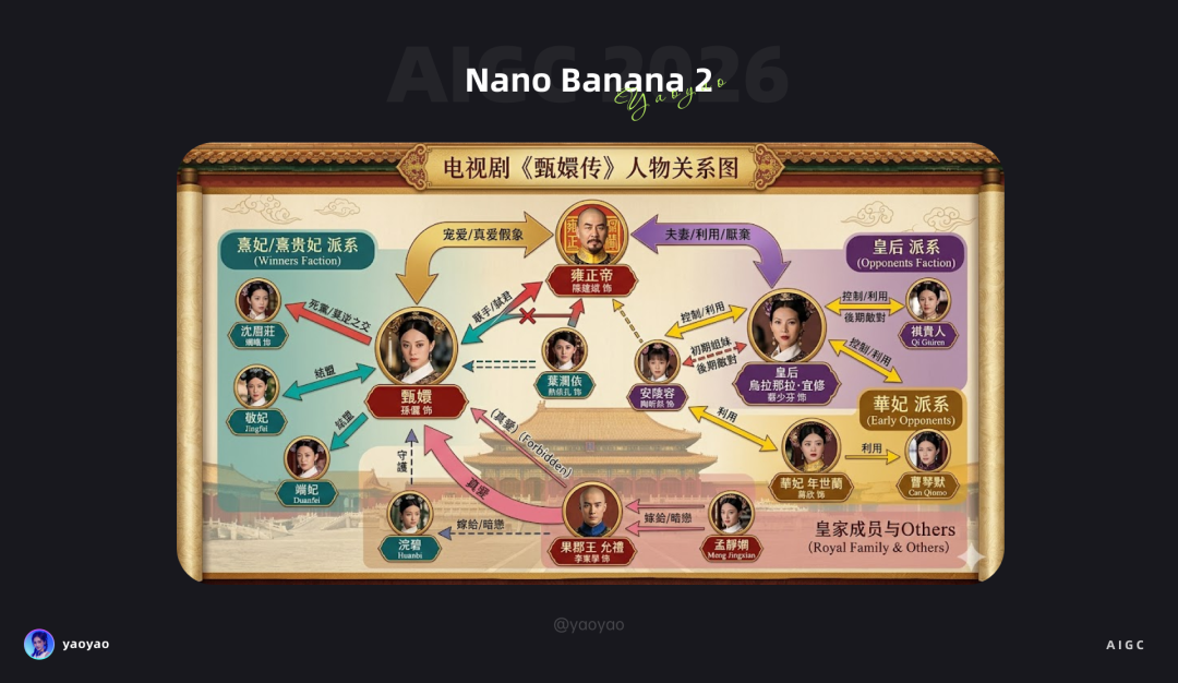 AI 生图大部分模型生成的文字会出现错误或者模糊不清,这次 Banana 2 在这方面有了明显进步。在 2K 和 4K 分辨率下,文字表现会更清晰,可以看下下图生成的中文还有繁体字。