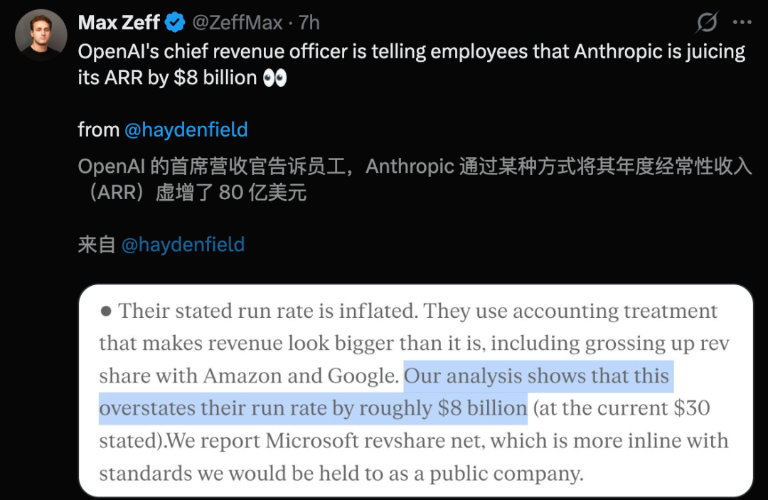甚至,他们痛批Anthropic 300亿美元营收,其中80亿纯「注水」,实际上还有一部分云分销商的总收入。