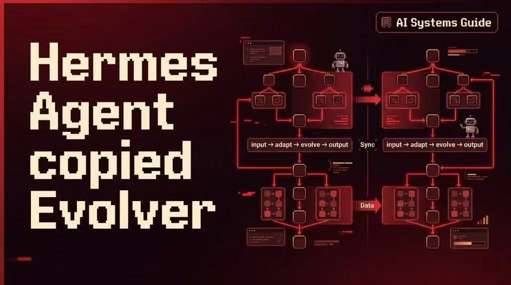 配图是两个项目的架构对比,标题写得很直接:Hermes Agent copied Evolver。