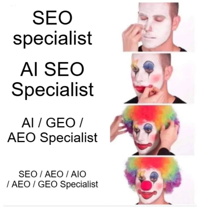 身份通货膨胀:从”SEO专家”一路演化到”SEO/AEO/AIO/GEO专家”——越加越多,头衔越来越长