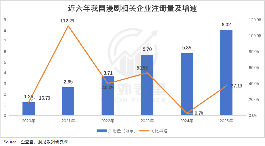 “想收割流量想疯了。”南瓜吐槽,面对乱象,她感到无力。而像这样疯狂逐利的玩家,还在源源不断地涌入:2025年,国内漫剧相关存量企业数量增长近四成,相比2024年再上一个台阶。