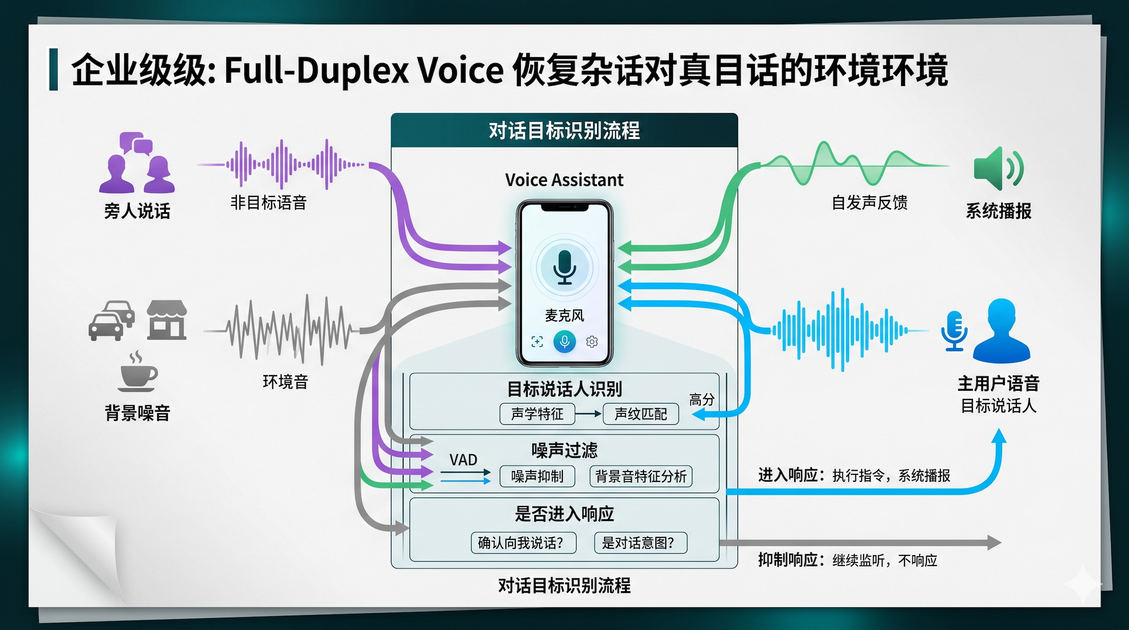 真正该补的是目标识别机制:谁是主说话人,什么声音应该忽略,什么插话要暂停当前回答,什么外部声音又应该被吸收到上下文里。