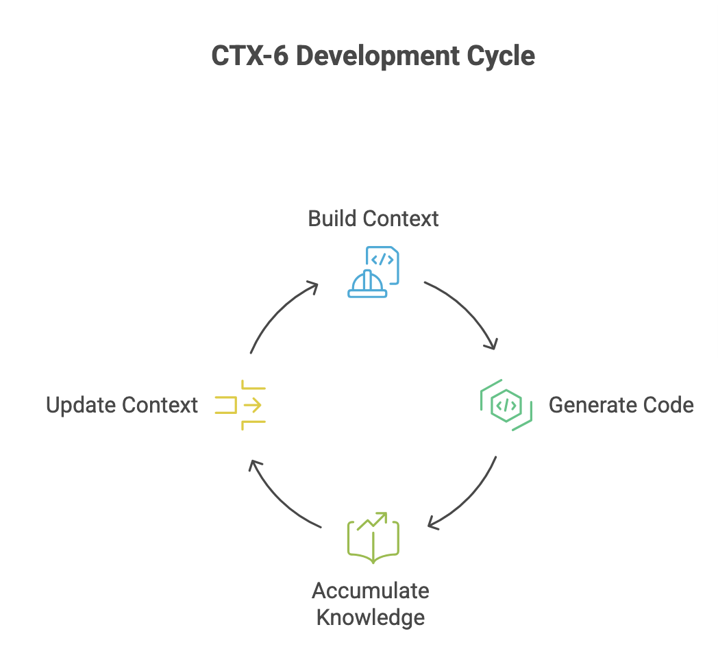 掌握CTX-6后,你会解锁一个更高级的认知:Context Flywheel(上下文飞轮)——这是零代码产品经理用AI开发的核心竞争力,也是我能快速上线AI营销工具、高效迭代的核心秘密,闭环逻辑简单易懂,零代码也能轻松践行: