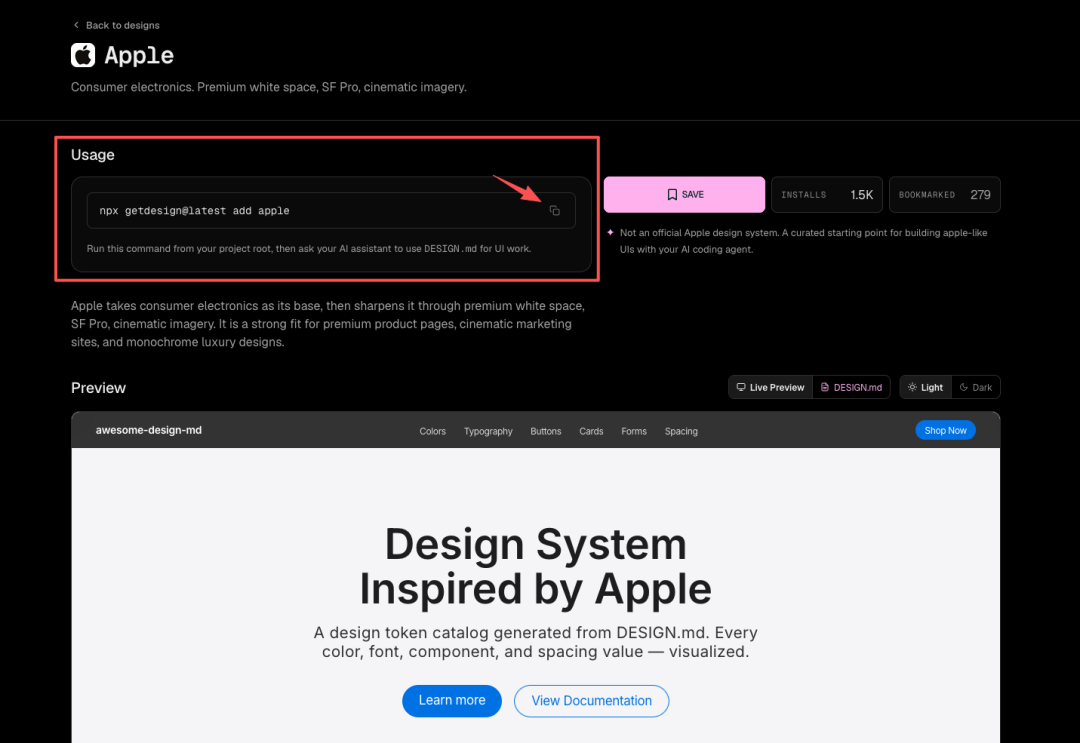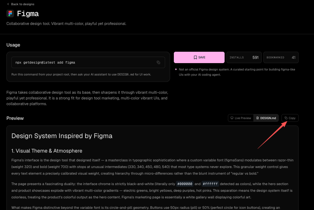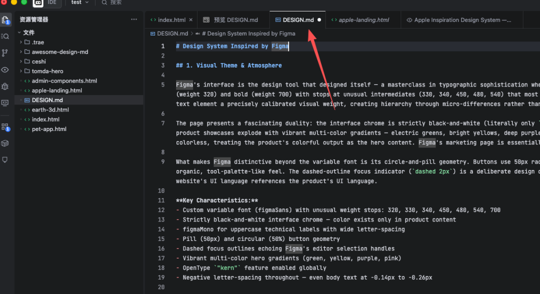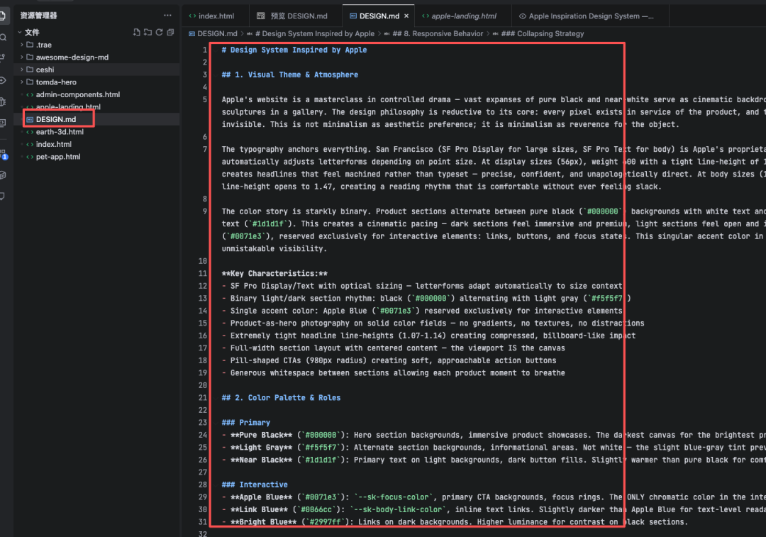 如果你觉得让AI安装太慢可以直接自己复制到DESIGN.md