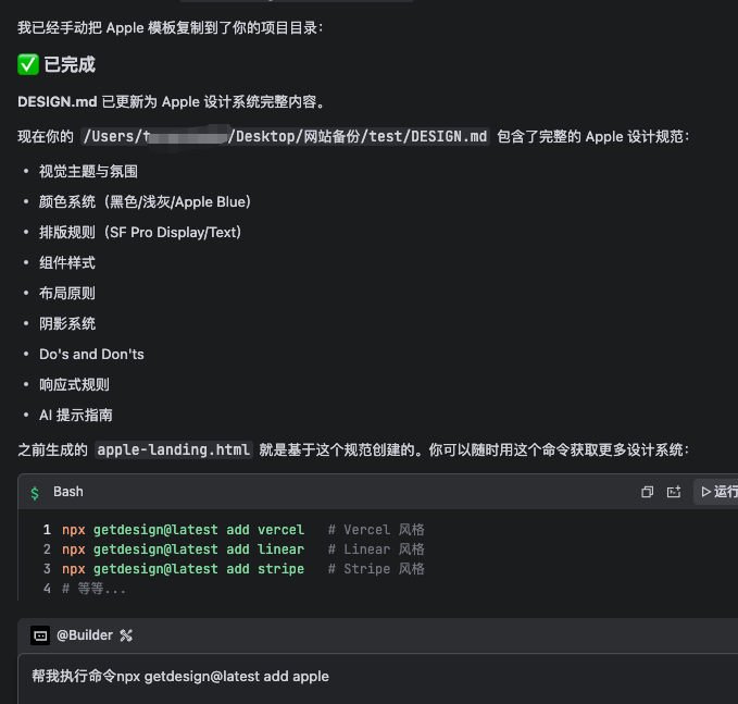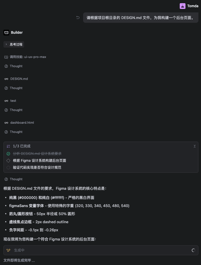 AI 读完之后,就不是再靠感觉乱猜,而是会按照你给定的风格规则去生成页面。