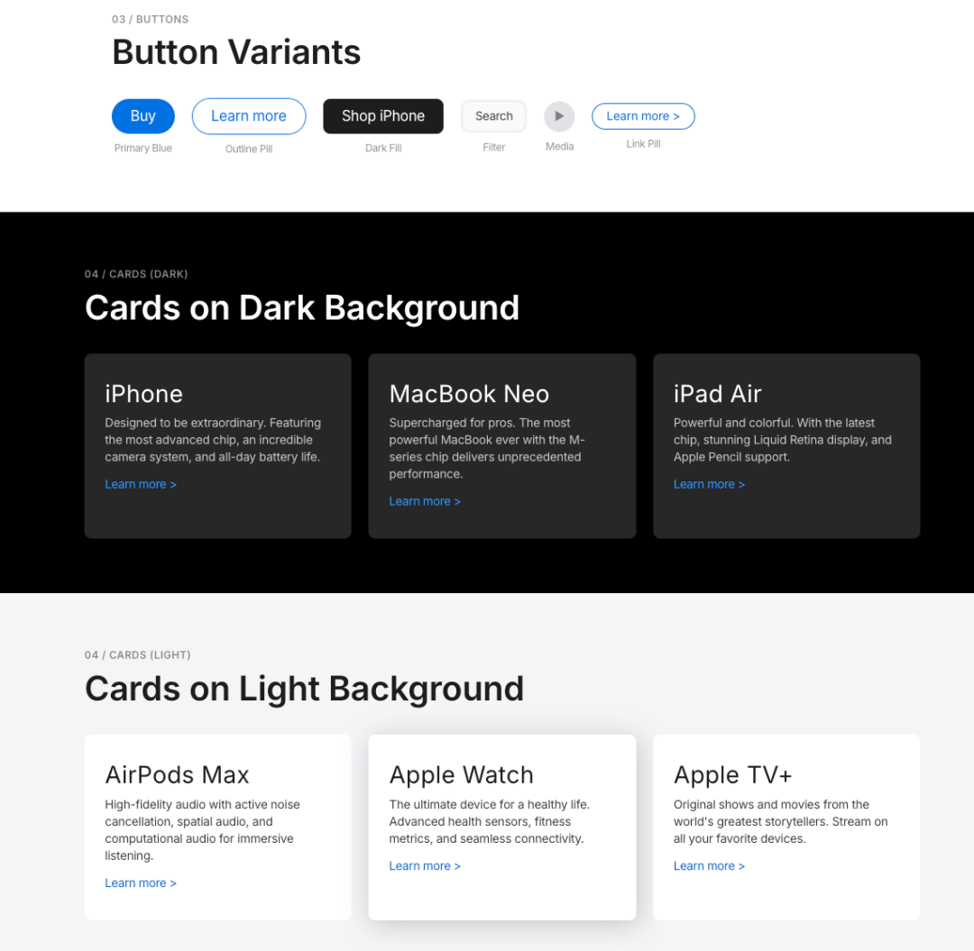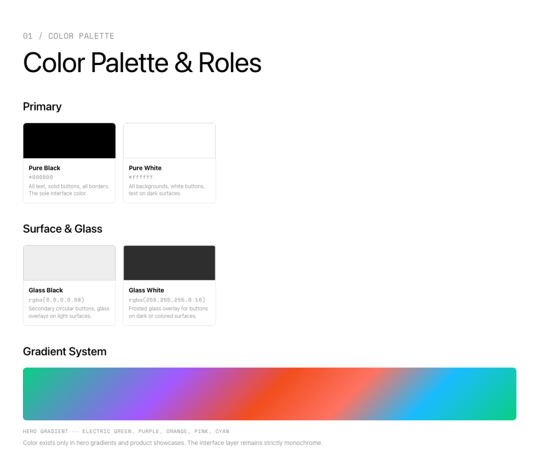 你觉得“像 Apple 一点”“像 Stripe 一点”“做得更有质感一点”,但这些话对 AI 来说都太虚了。没有明确的设计规则,它最后大概率还是只能靠自由发挥。然后你懂的,翻车现场就来了。