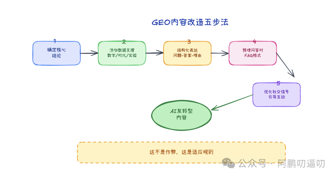 理解了可信度信号,我们就可以反向操作,把内容改造成AI更容易引用的形式。