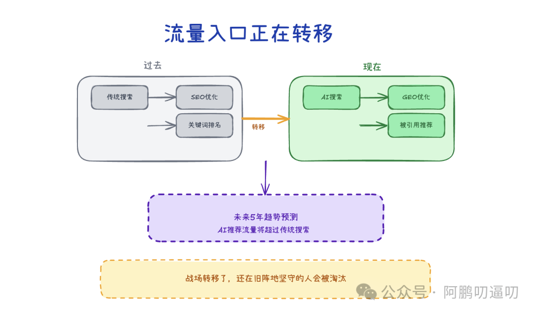 未来5年,能在AI搜索里被引用的品牌,会获得巨大的流量红利。而那些只会做传统SEO、忽视GEO布局的人,会慢慢发现自己的存在感在消失。