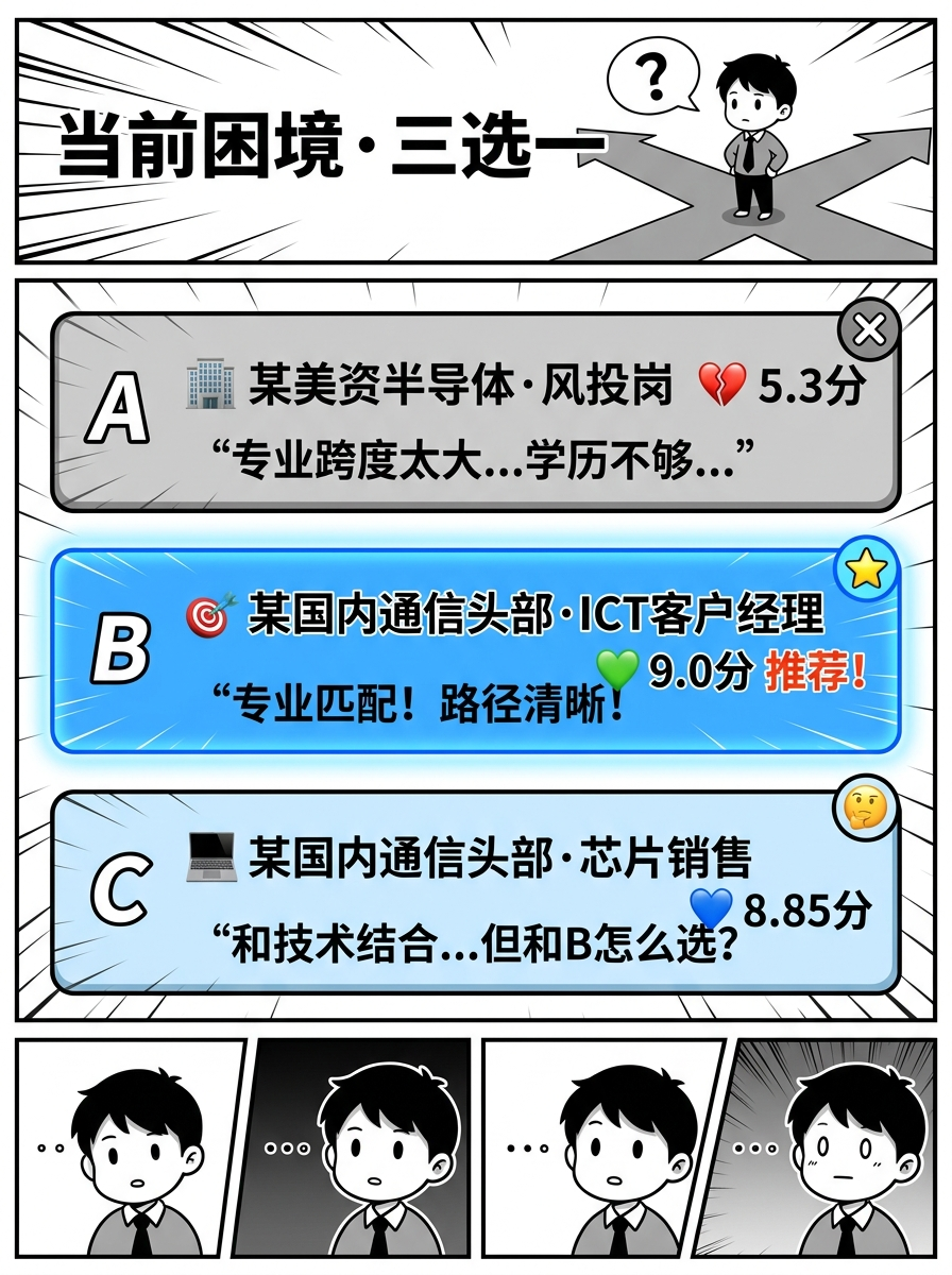 因此,该问题的本质并非“如何在A、B、C中做出最优选择”,而在于:在缺乏内在参照系的前提下,任何比较都将持续放大不确定性。
