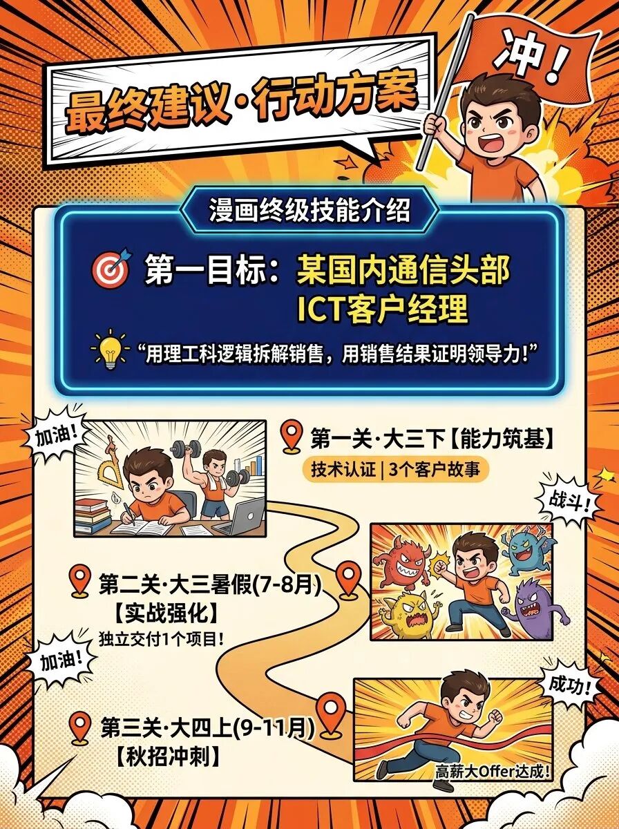 而ICT客户经理与芯片销售岗位,则在“技术基础+商业导向”的维度上与其愿景形成较高一致性。