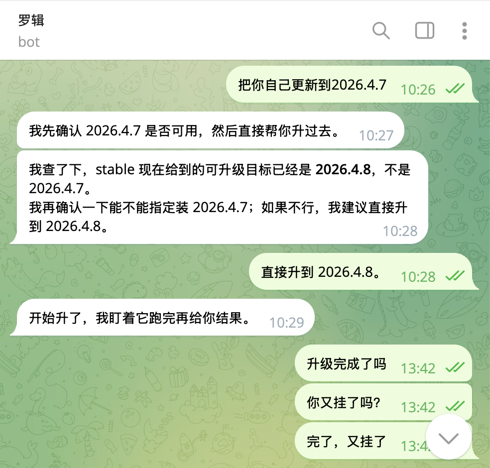 要命的是,一旦挂掉,大部分人对此完全束手无策,对于原版虾的用户,上面的对话就是和龙虾的最后一次对话。