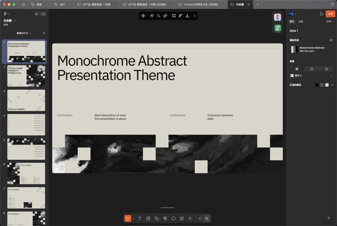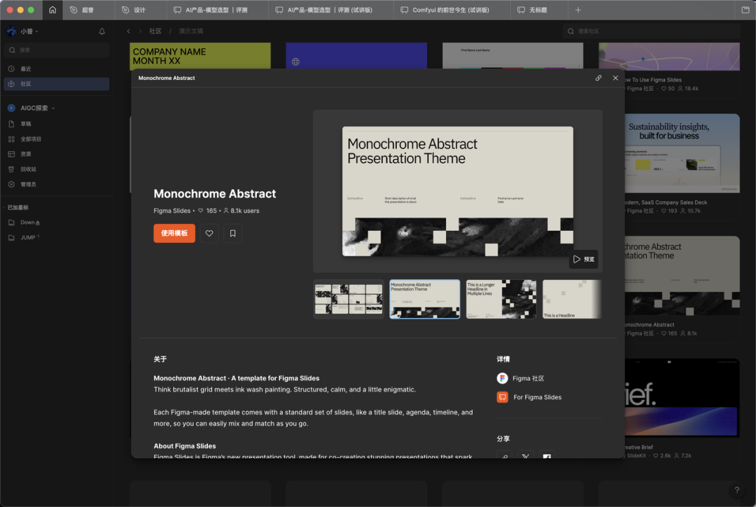 先去 Figma 社区选了一个PPT模板,暖灰色系、水墨纹理配图,整体风格很干净。