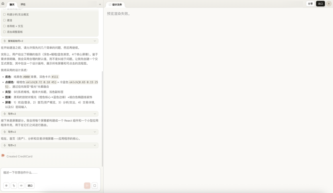 当然,Claude Design 现在还是 Research Preview,毛病不少。渲染会失败、inline comments 偶尔会丢、token 贵得离谱,跑三个案例就把周额度打满了。但它把设计系统这件事产品化了,方向是对的。