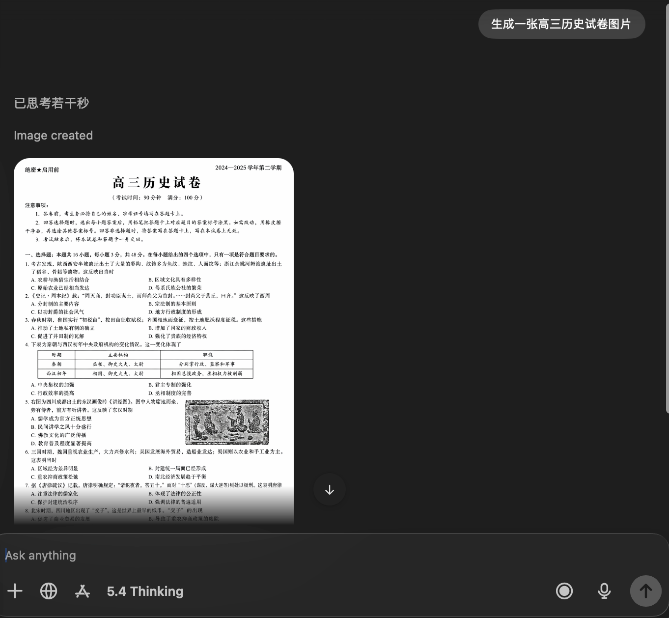 所以你如果说,今天就让它一键吐出一份可印刷、零错误、可直接大规模交付的高考模拟卷。