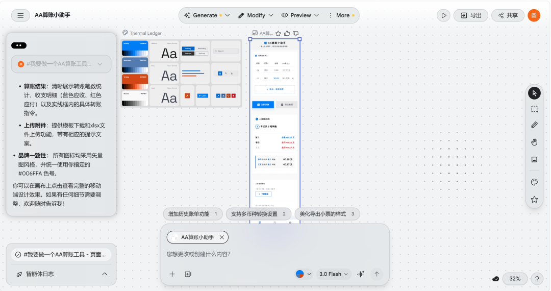 以我做的“AA算账工具”为例,简单分享部分提示词。篇幅有限,我无法完整展示,方法论都差不多。概括起来,我写提示词的逻辑思路是: