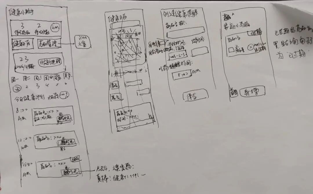 由于落笔时我的思路经常变化,在明确了基础的产品功能后,我通常会选择手绘产品原型图,毕竟纸质版更有助于我快速调整页面布局。