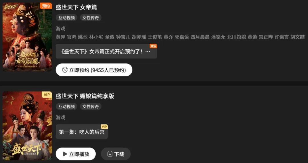 据海克财经观察,此前真人实拍的互动游戏《盛世天下》曾引发大众对这种内容形式的关注。这一2025年9月上线的互动游戏,在安卓、Steam等平台的售价为39元,官方数据显示发售12天,全球销量就超过100万套。游戏中,用户扮演主角武元照,通过不同选项推动剧情发展,在唐代宫廷中步步为营。该游戏制作人Demi公开表示,《盛世天下》的剧本超过30万字,素材时长1200分钟,有几十种不同结局,制作周期近1年。