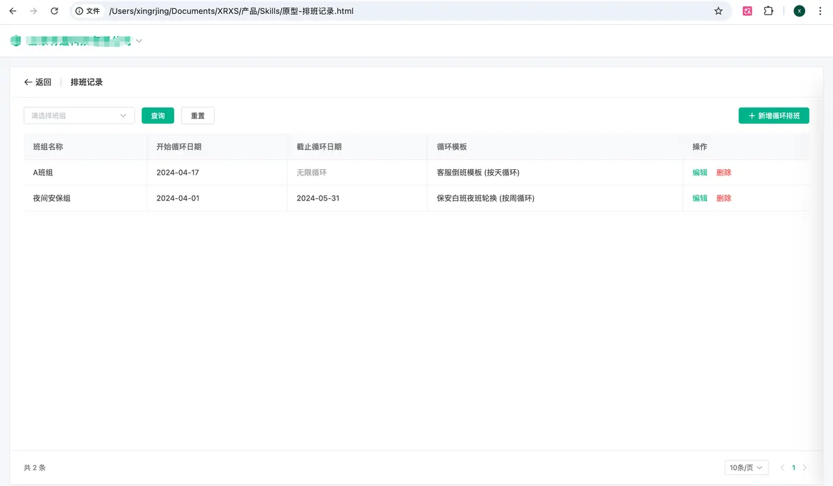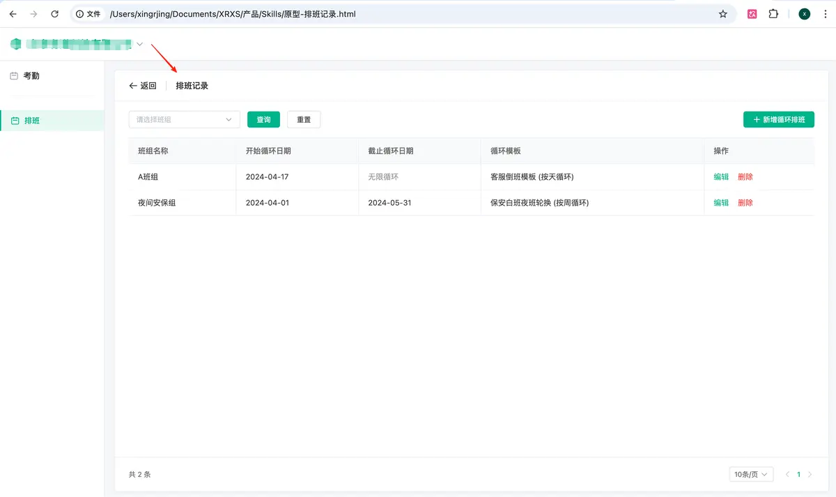 “你好像少了一个页面,就是创建循环排班的页面。”