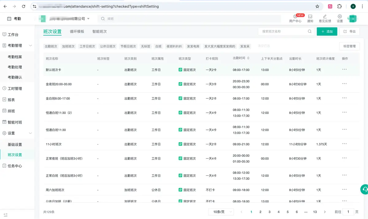 同时,跟提示词一起,附件里附上现有系统的4张截图(重点说三遍,重点说三遍,一定要有截图,它们分别代表:列表页面(如下图)、新增页面、报表页面、排班页面,它们比较典型、常用,目的是让Skills把现有系统的设计规范、样式等写到Skills里,相当于让它学习我们系统的设计规范。