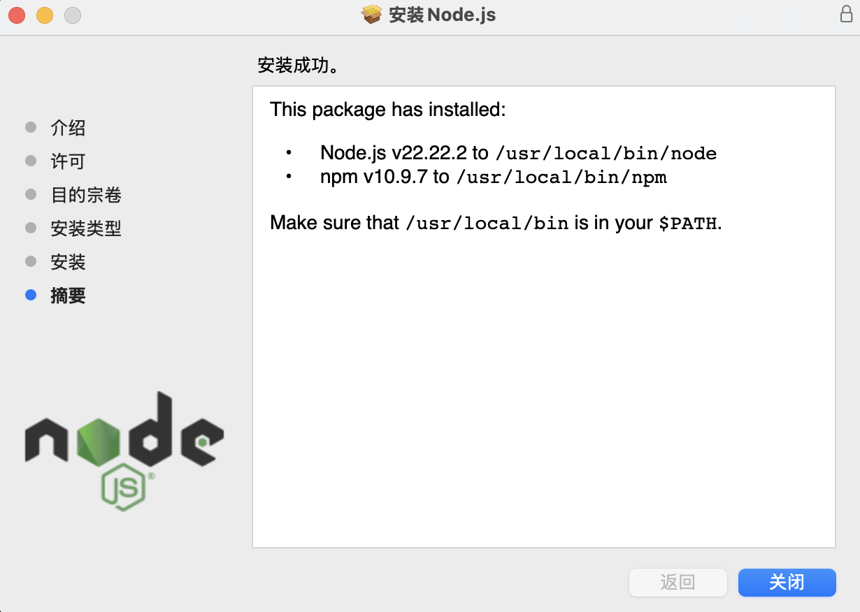 如果出现 v18.x 或 v20.x 这样的数字,恭喜你,安装成功了。如果显示 command not found,说明没装成功,得重来。