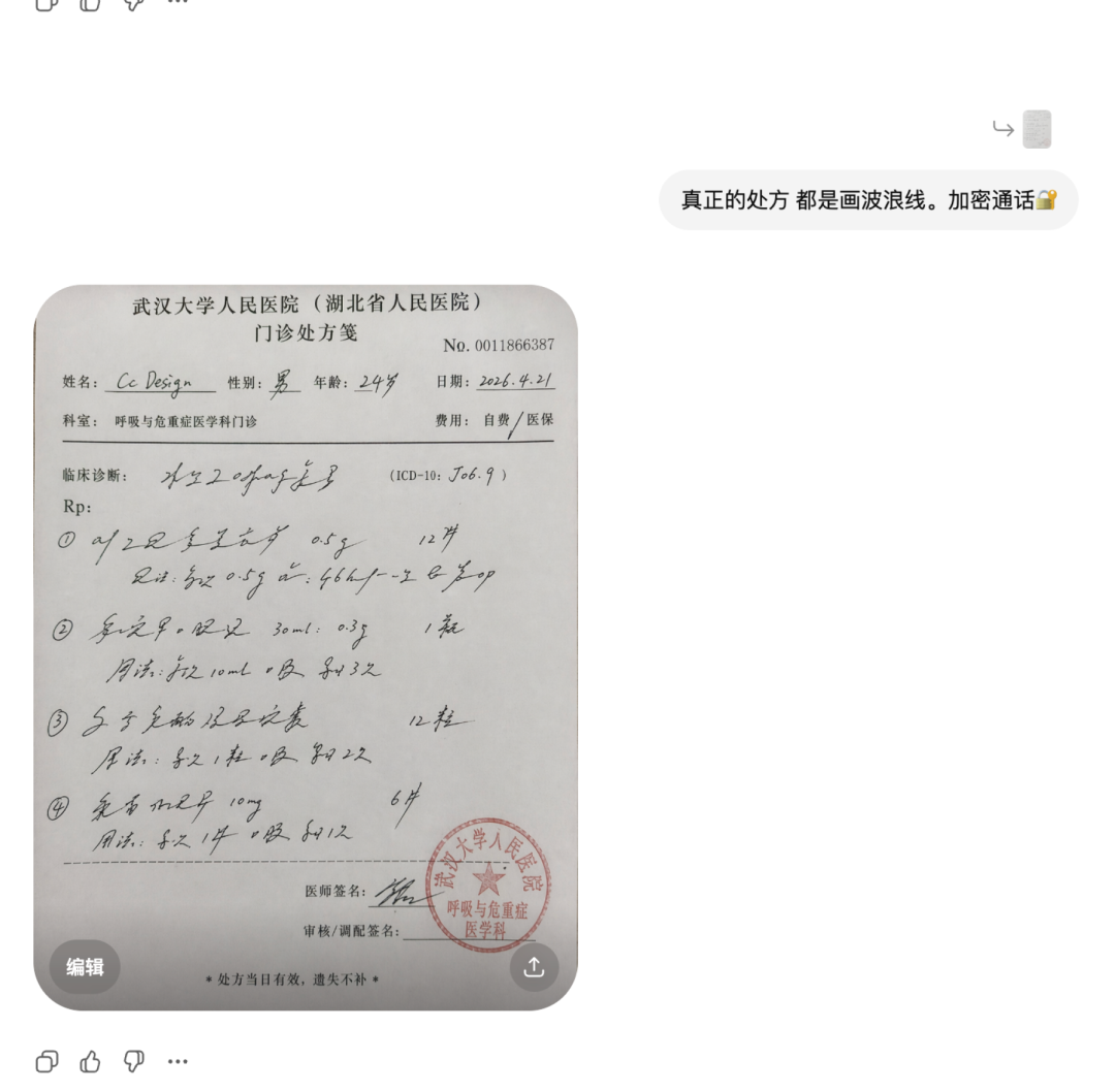 一张AI生成的门诊处方,抬头准确、科室准确、手写药名准确、红色公章准确。而真正的医生处方,反而全是波浪线。