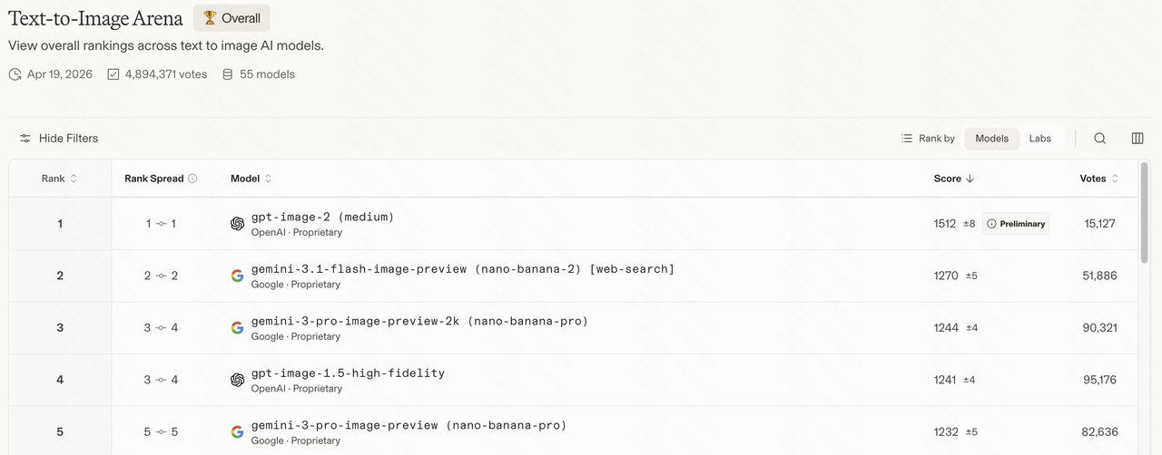 今年 2 月,Google 放出了 Nano Banana 2,我觉得惊为天人。之后两个月,它一直霸占 Arena.ai 的 Image Arena 排行榜第一名。直到4月21日…