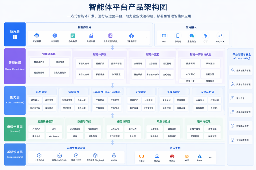 生成一个智能体平台的产品架构图