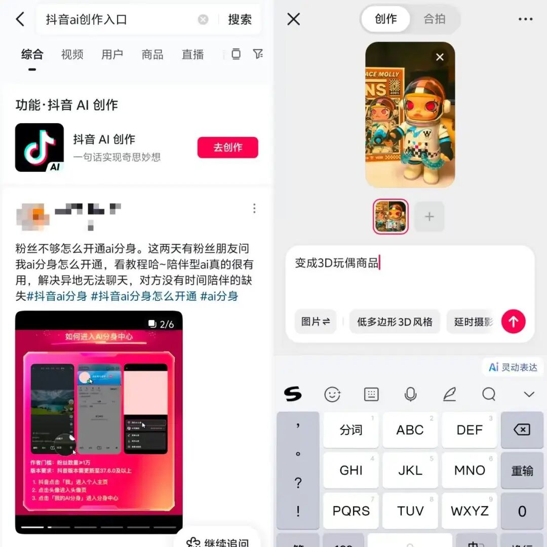 抖音正式上线独立AI创作入口,无需跳转第三方,一句话即可生成视频、图片与文案。从3D玩偶改造到合拍联动,AI正从辅助工具变为原生创作能力,大幅降低内容门槛,加速短视频与图文行业进入轻量化创作新阶段。