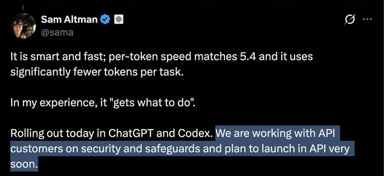 再看API延迟发布。官方说”working on security and safeguards”。客观效果:API上线前想用GPT-5.5,唯一路径是Codex生态。用户被锁进了应用层。