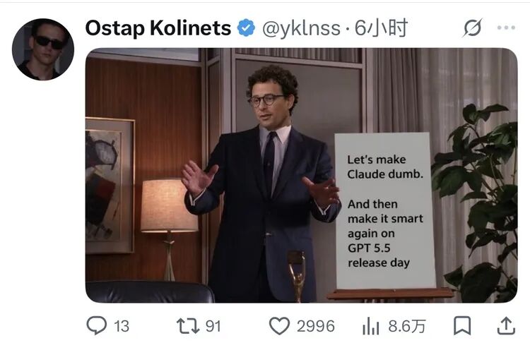 几小时后:”Claude Opus 4.7 is no longer the best model in the world. Not even close.”