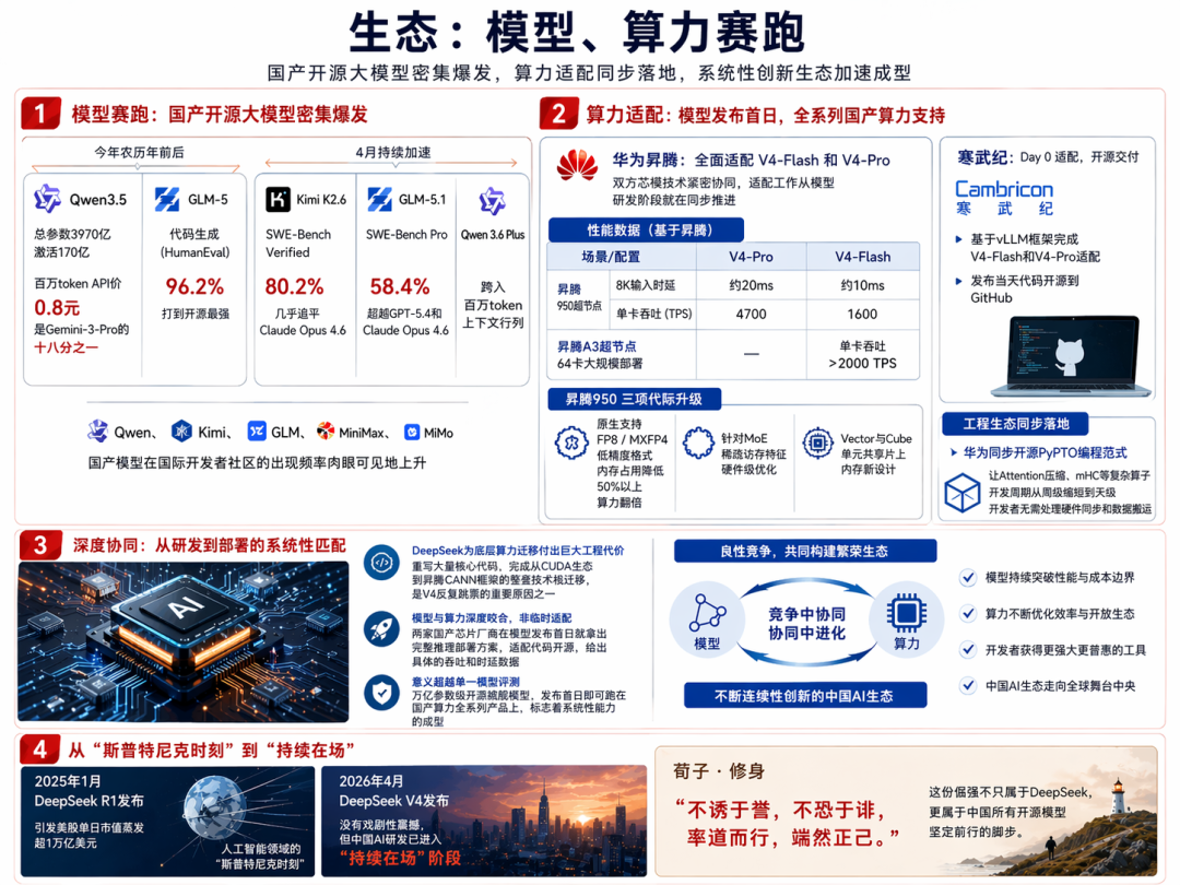 今天V4的发布没有那种戏剧性的震撼,但中国AI研发已经从“偶尔令人震撼”进入了“持续在场”阶段。
