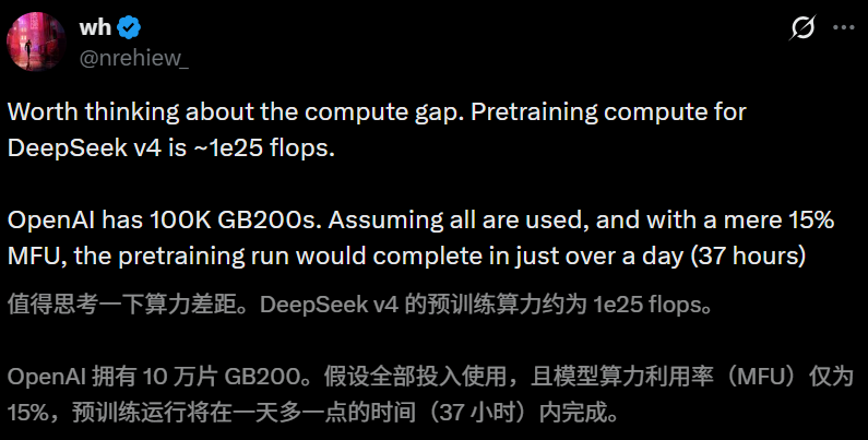 OpenAI手里有10万台GB200,哪怕只用15%的利用率,37小时就能跑完同等规模的训练。