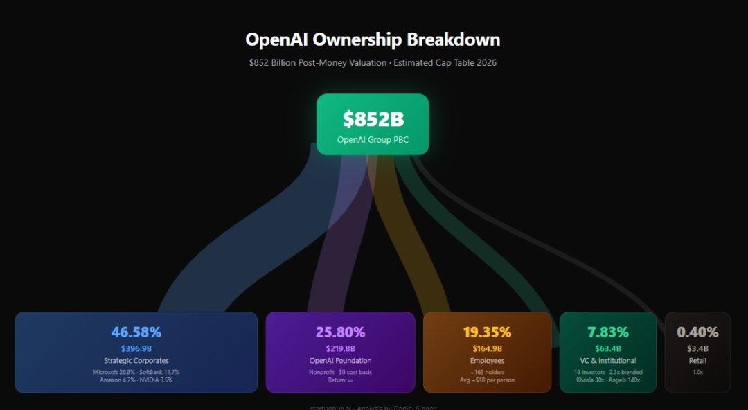 对面的Dario Amodei,则是标准的创始人持股结构,身家在2026年初飙到70亿美元。