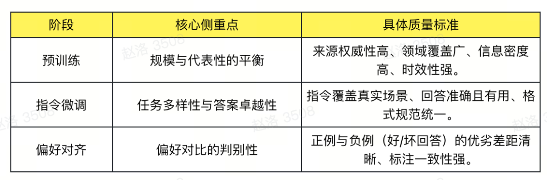 什么是“高质量数据”?通用核心定义:高信息密度、低噪声、强目标对齐。具体因阶段而异: