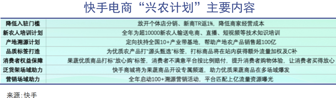 电商平台也开展了一系列助农行动,比如抖音为生鲜品类提供免佣政策,并以流量扶持、返还推广费等方式降低创业门槛;拼多多通过“农云行动”计划带动数千万农业生产者参与数字经济;快手推出“兴农计划”,在开店、流量与产品供应等多个环节给予扶持等。