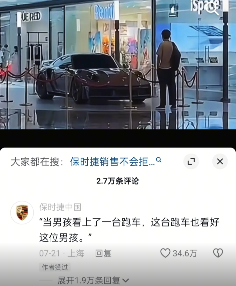 比如保时捷,按许多人逻辑,保时捷属于高端品牌,所以我应该去强调阶级差异,强调车主的非同凡响,搞什么有的产品你只能仰望是吗?