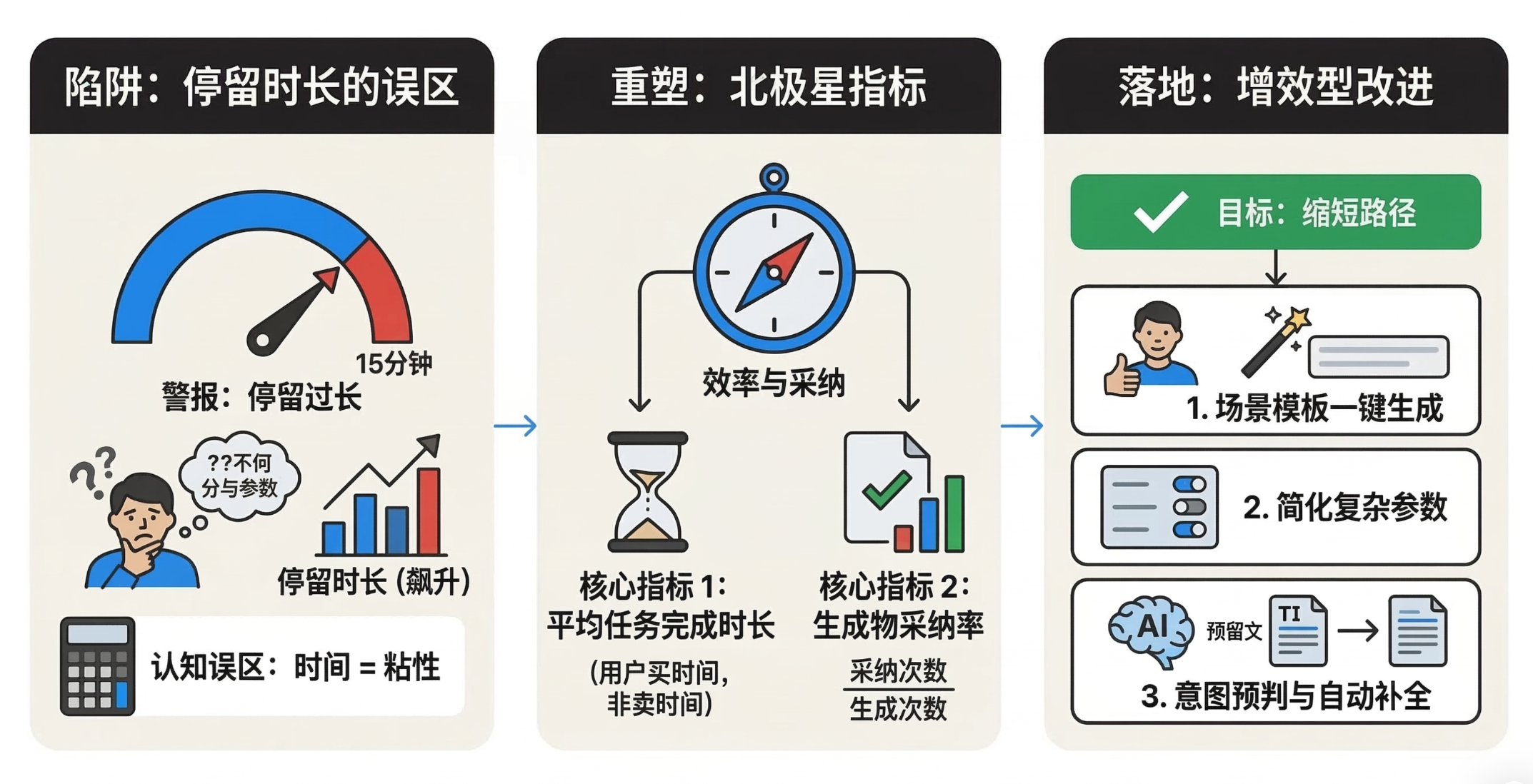 陷阱二:误把“停留时长”当蜜糖,违背增效型AI“用完即走”的本质