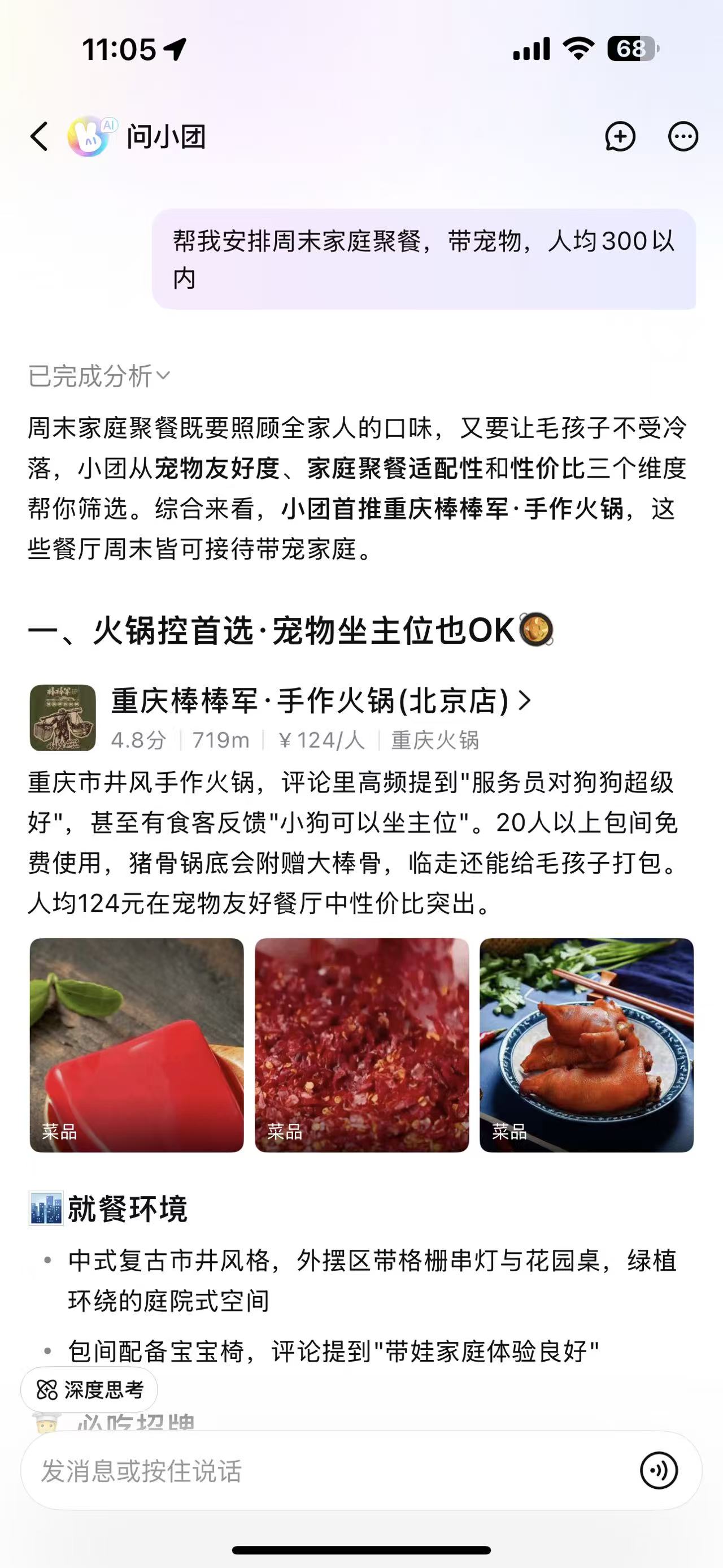 核心改变:以前用户打开美团,是因为”我要找餐厅”。现在用户说”帮我安排周末家庭聚餐,带宠物,人均300以内”,AI直接完成从搜索到下单的全链路。
